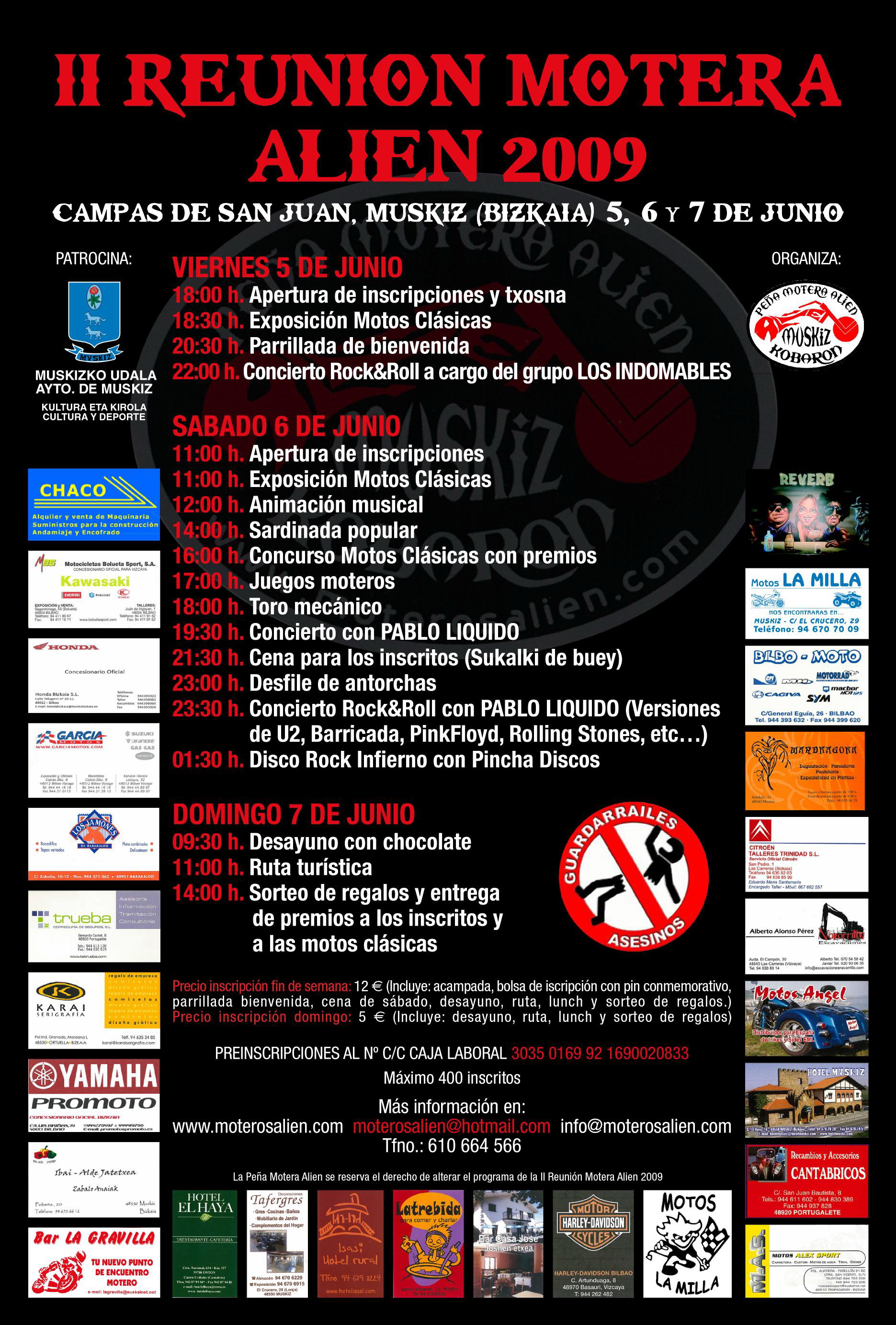 LA PEÑA MOTERA ALIEN SE RESERVA EL DERECHO DE ALTERAR EL PROGRAMA DE LA II REUNIÓN MOTERA ALIEN 2009.