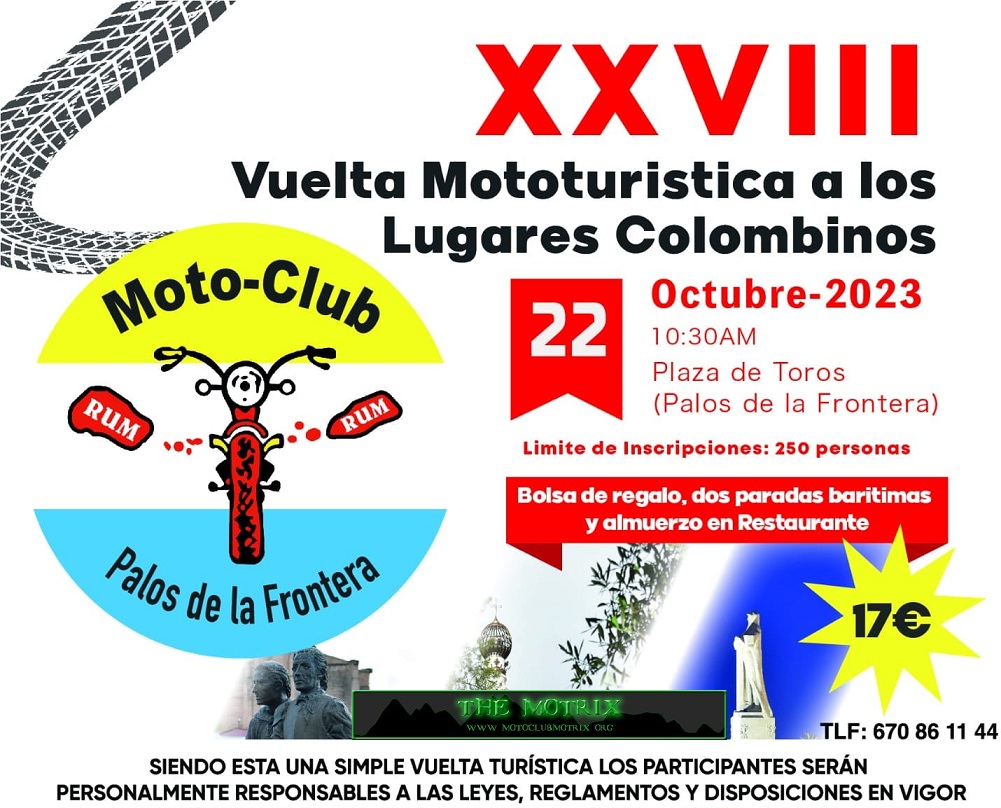 APLAZADA | La XXVIII Vuelta Mototurística a los Lugares Colombinos, organizada por el Motoclub Rum-Rum