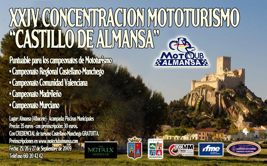 EL MOTO CLUB ALMANSA INFORMA QUE EL PROXIMO DIA 25, 26 Y 27 DE SEPTIEMBRE DEL 2009 CELEBRARA LA XXIV CONCENTRACION CASTILLO DE ALMANSA QUE SERA PUNTUABLE PARA LOS CAMPEONATOS DE MOTOTURISMO: