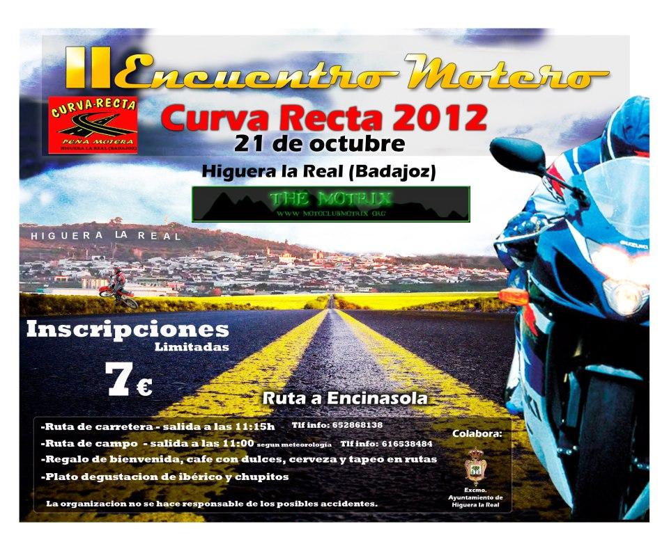 Un encuentro motero, con la idea de realizar una ruta hacia Encinasola con ruta de carretera y campo (Según meteorología); y posteriormente comer juntos en la caseta de la Plaza de Higuera la Real.
