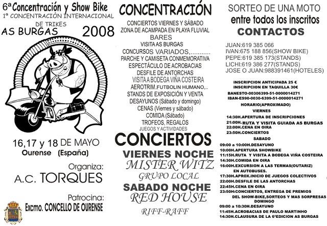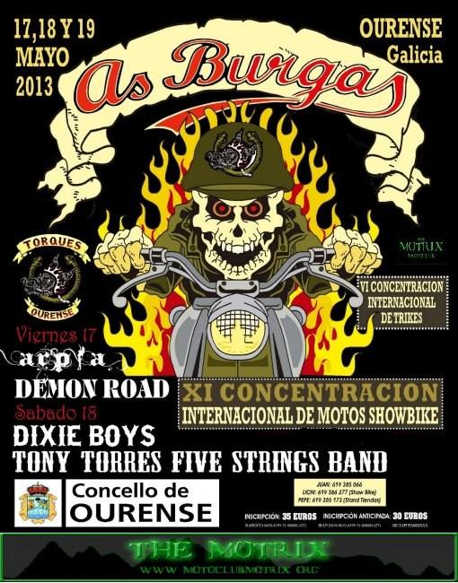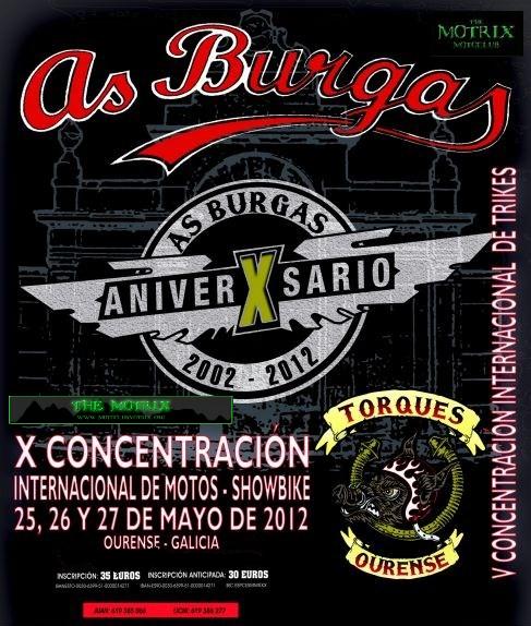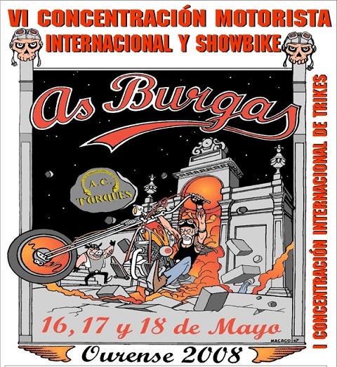 LOS PROXIMOS DIAS 15,16 Y 17 DE MAYO SE CELEBRA LA CONCENTRACION AS BURGAS 2009 EN OURENSE DE LA QUE OS ADJUNTAMOS EL CARTEL Y OS INVITAMOS A VENIR, SI QUEREIS ENTRADAS ANTICIPADAS LAS PODEIS COMPRAR EN NUESTRA TIENDA MOTORCYCLES SHOP OURENSE, OS AGRADECERIAMOS QUE NOS CONFIRMEIS VUESTRA ASISTENCIA.