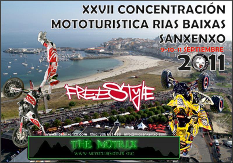 11:00 h. Apertura de inscripciones con: Camiseta conmemorativa de la XXVIIº concentración moto turística internacional Rías Baixas Sanxenxo 2011, medalla conmemorativa, Refresco o caña y “Bolo Quente”, participa en los sorteos de la ruleta de la fortuna (Sábado), Bono-Descuento para el espectáculo Freestyle del sábado, pase para la carpa del sábado, cena del sábado, pase para 2 pinchos el domingo, sorteos varios.