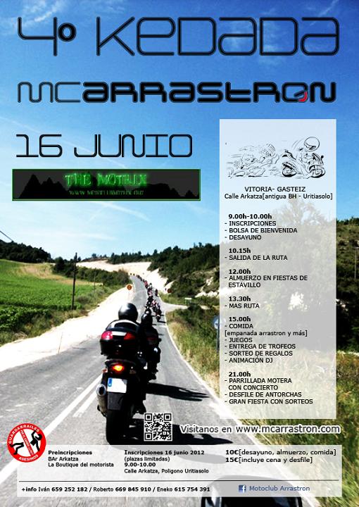 CAMISETA/ BOLSA BIENVENIDA/ DESAYUNO/ RUTA/ ALMUERZO/ JUEGOS/ RUTA HACIA La Puebla de Arganzon/ CONCIERTO (kontroversion)/ COMIDA/ JUEGOS MOTEROS/ CONCIERTO (Whisky Dyck)/ ENTREGA DE TROFEOS/ SORTEO DE REGALOS.