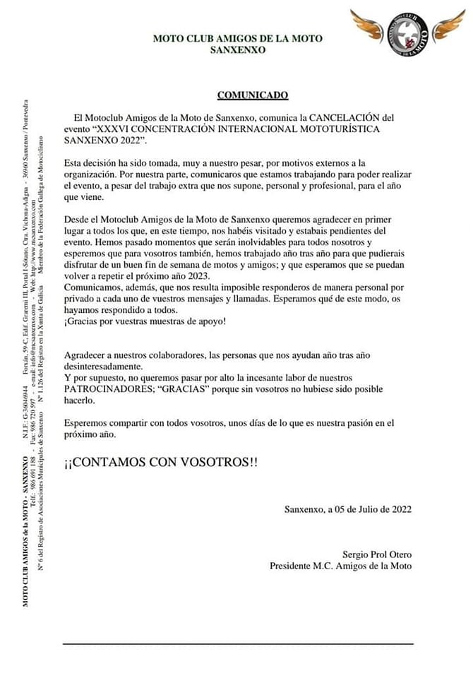 Gracias por vuestra paciencia por la espera de la confirmación de la fecha, pero ya es definitivo que nos veremos en los días 09, 10 y 11 de Septiembre de 2016 para disfrutar de nuestra pasión, en la XXXII Concentración Moto turística Internacional Sanxenxo 2016.