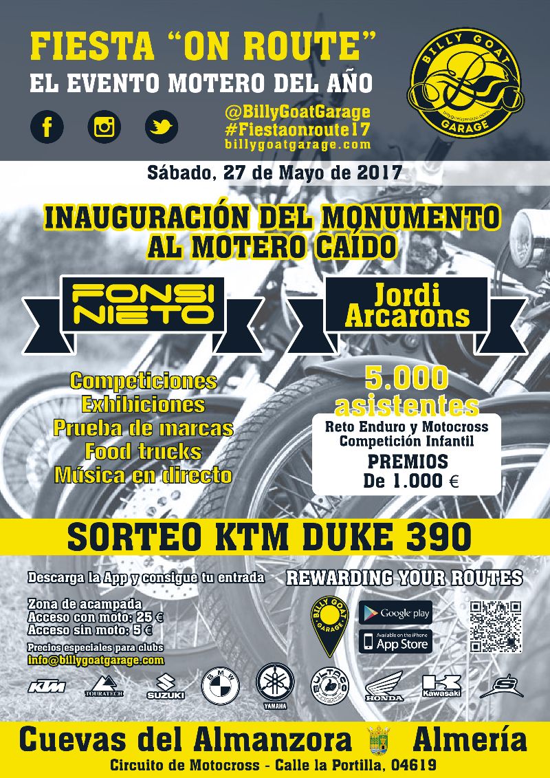 El próximo sábado 27 de mayo tendrá lugar un nuevo encuentro biker. En Almería se reunirán hasta 5.000 aficionados en torno al circuito de Cuevas del Almanzora, para celebrar la presentación de la aplicación para motos Billy Goat Garage (BGG), con Jordi Arcarons y Fonsi Nieto como embajadores de honor.
