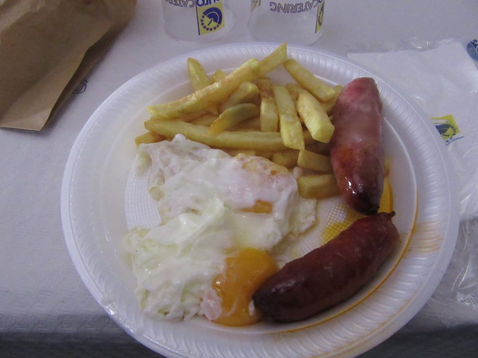 Hoy ha empezado la nueva temporada de mañoalmuerzos y de buena mañana y con una niebla que no se veía nada, por lo espesa y llorona o meona, como quieras, para Andorra que me he ido. Buena asistencia, mismos precios que otros años y un almuerzo más que decente: dos huevos, chorizo, longaniza y patatas: 5€. Todo ello acompañado con vino, gaseosa, agua y café, leche y copita de licor. El almuerzaporte: 12€ con derecho a camiseta técnica de manga larga, parche y pequeña riñonera.
