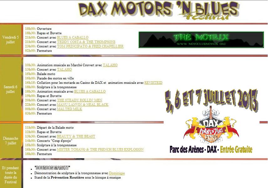 El Festival Dax Motors n' Blues fue creado con la idea de ofrecer un fin de semana excepcional a los aficionados del blues y de las motos