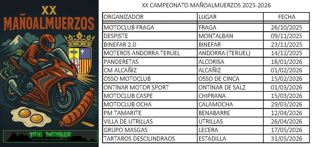 CALENDARIO XX CAMPEONATO MAÑOALMUERZOS 2025-2026