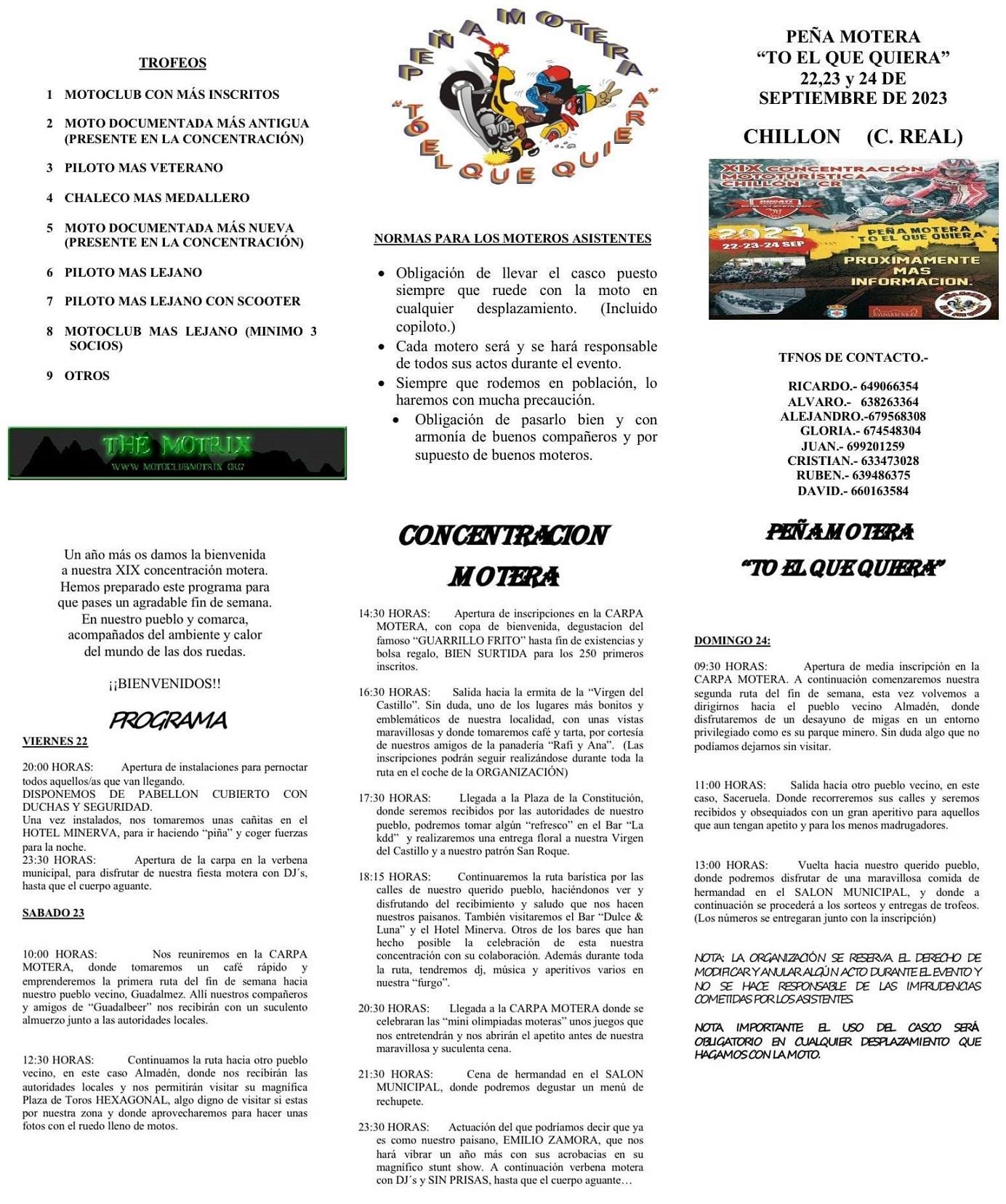 Programa XVI CONCENTRACION MOTOTURISTICA TO EL QUE QUIERA CHILLON 2018