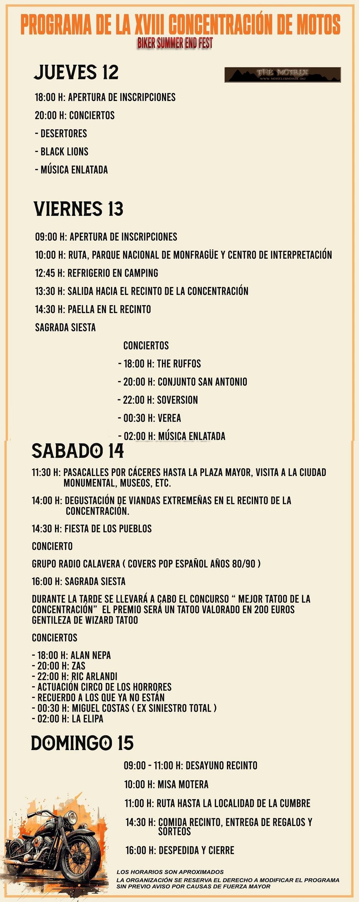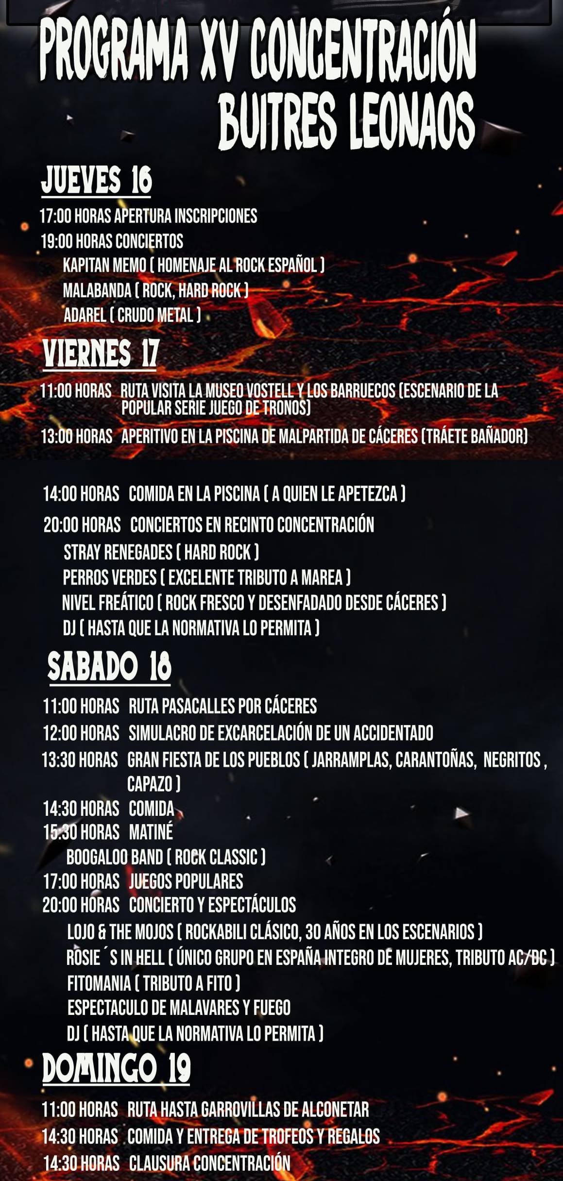 PROGRAMA XV CONCENTRACION INTERNACIONAL DE MOTOS CACERES, BUITRES LEONAOS