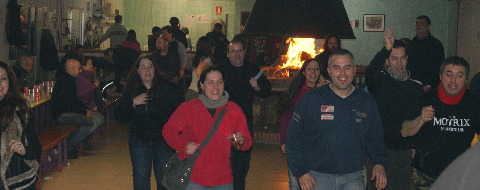 , que nos sirvió para reponernos y continuar nuestra aventura. Llegando a la altura del embalse de la Peña....sorpresa... se nos pone a nevar, hasta llegar Anzanigo, nos pusimos a montar las tiendas rápidamente. Allí nos encontramos con Jordi y su mujer...con Figot, Carmen y con dos colegas más. Nos inscribimos y nos fuimos a tomar unas cervezas a la salud de nuestro amigo Kaisser (lesionado por jugar a futbol)…luego dicen que las motos son peligrosas.Mas tarde llega la hora de la cena,
