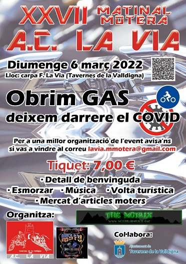 L'A.C. La Via organitza la XXIX Matinal Motera, on podreu gaudir de: