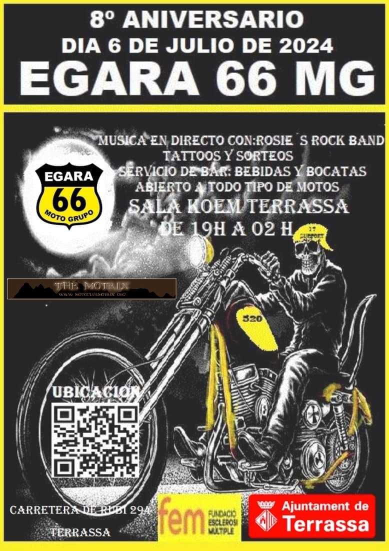 Como ya dije para Terrassa que me fuí este domingo. El lugar del evento, la Masia Els Bellots, me atraía pues había estado allí hace años en una concemntración organizada por el mismo moto grupo, Egara 66. Decir debo en primer lugar que quedé un poco decepcionado por el aparente abandono del lugar, muy descuidado para mi parecer, comparándolo a mis recuerdos. Lo positivo del día fue a mi entender el encuentro de una cuarta parte de Motrix, que hacía tiempo que no se producía : Neo, que vino con la moto ligeramente tocada, Pegaso, Forni, Kaiser con su nueva adquisición y un servidor. El evento lo aprovechamos a tope : de nueve de la mañana, fuimos los primeros, hasta las tres de la tarde, los últimos en marchar. Aparte del bocadillo de butifarra y cerveza, número para el sorteo, recuerdo para el motoclub y concierto con tres grupos que nos amenizaron la cálida mañana. Otra agradable sorpresa fue la presencia del único fundador de Motrix que yo no conocía: Antonio, con su hijo Toni y su amigo Jordi, un gran placer, con quienes compartimos mesa y tiempo, a parte de unas birras. En fin, mañana super aprovechada que ojalá se repita más a menudo.