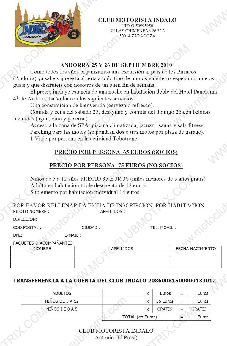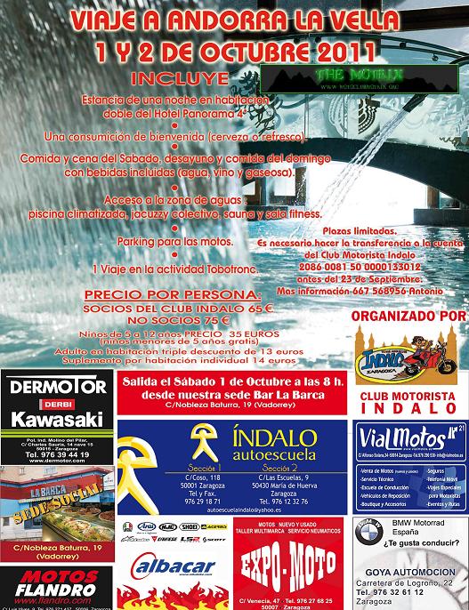 Os mando el cartel de nuestra excursión anual a Andorra La Vella (La de los Pirineos) como ya sabeis nuestras excursiones estan abiertas a todo el mundo y a todo tipo de motos, saldremos de Zaragoza el Sabado 3 de Octubre a las 8h desde nuestra sede en el Bar Alcatraz c/Segundo Chomon y haremos una parada para repostar sobre Lerida mas o menos y para el que no salga de Zaragoza o no le apetezca ir en grupo nos vemos en el hotel para comer.