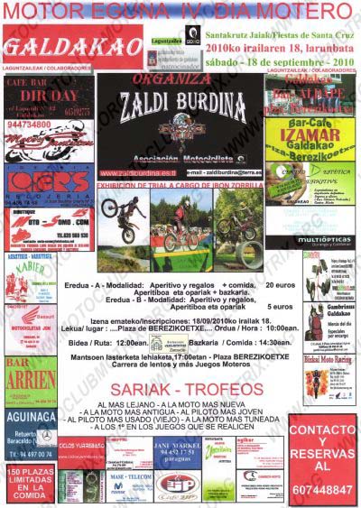 trofeos: al mas lejano, a la moto mas nueva, a la moto mas antigua, al piloto mas joven, al piloto mas usado (viejo), a la moto tuneada, a los 1º en los juegos que se realicen.