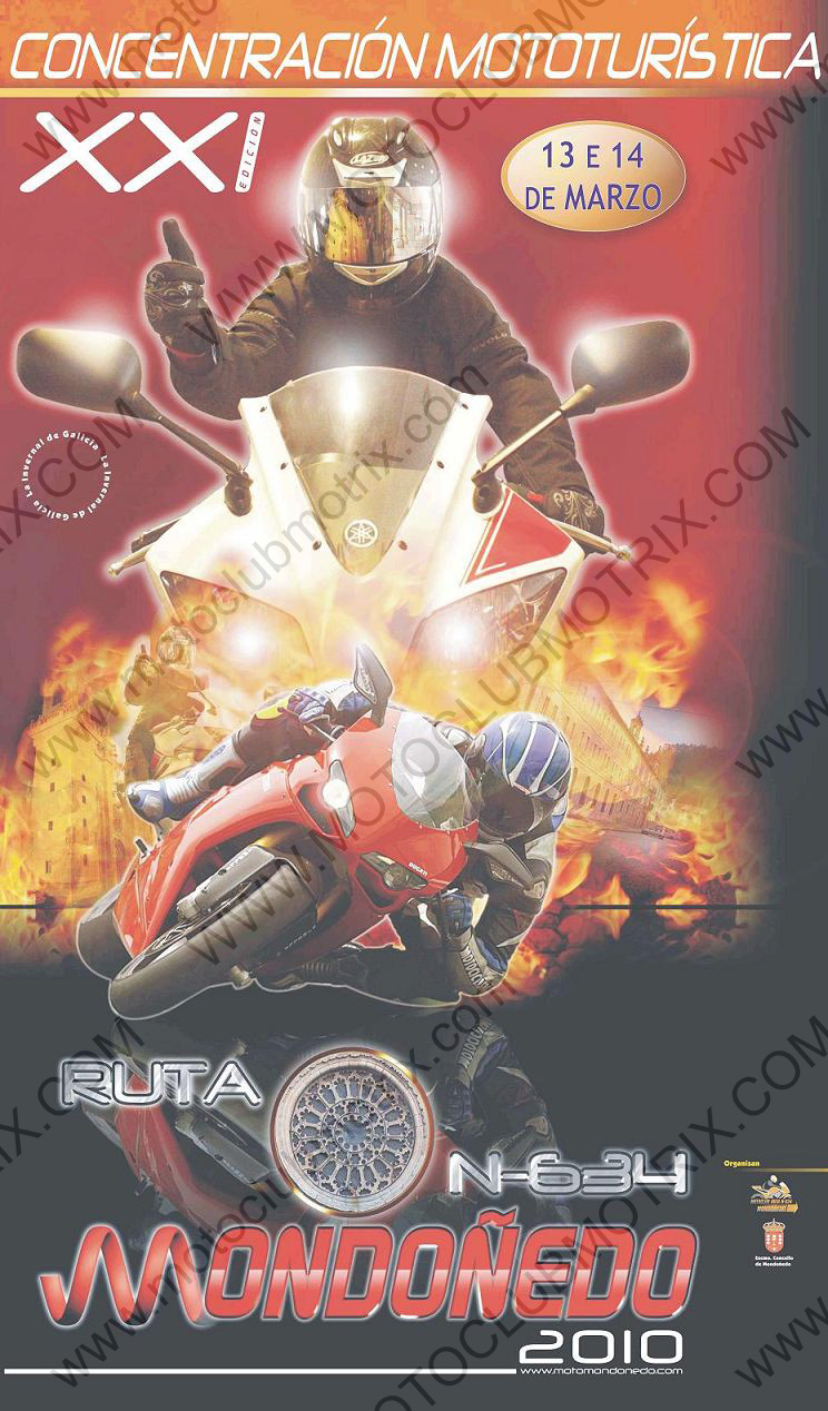 La concentración Ruta N-634 de Mondoñedo (Lugo) llega este año a sudecimonovena edición. Se celebrará los días 15 y 16 de marzo de 2008,segundo fin de semana del mes. Como viene siendo tradicional habrácomidas, cenas, espectáculos moteros y de otro tipo, rutas, premios...