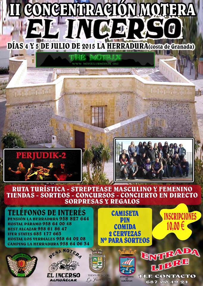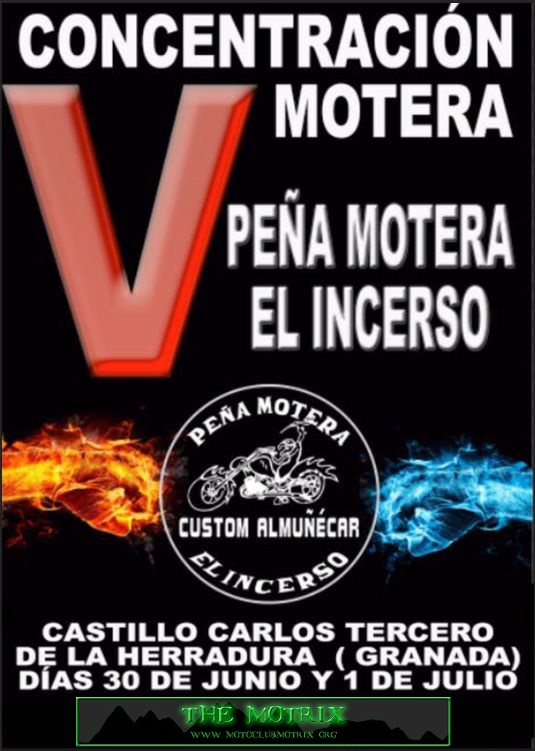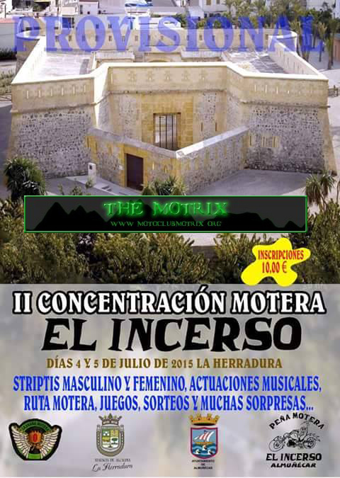 VAMOS A DARLE CAÑA AL CARTEL Y POR ESO OS PIDO UN FAVOR COMPARTIR EL CARTEL PARA QUE LO VEA TODO EL MUNDO ESTE AÑO SERA ESPECTACULAR...Quieres pasar un finde al lado del mar en un recinto privilegiado como es el castillo Carlos tercero de la herradura ( granada)el día6 de julio y el 7 de julio? La entrada es libre y para todo tipo de motos. el que se quiera inscribir solo vale 10 euros y consta de camiseta parche dos cervezas la comida del domingo y número para el sorteo de un montón de regalos..el sábado al medio día se dará una comida de cortesía gratis para todo el que esté en la concentración.el sábado abriremos las inscripciones a las once de la mañana y tendremos un día agitado con sorpresas y juegos..a las once de la noche habrá un pedazo de concierto en directo junto con gogos masculino y femenino para vuestro disfrute .se dará un jamón de regalo a los club con un mínimo de 30 incritos..al término del grupo un striptis integral masculino y femenino y hasta que el cuerpo aguante con la música de nuestro dj fran profesional..el domingo apertura de inscripciónes a las diez y a las once ruta mototuristica al puerto deportivo marina del este un entorno precioso.a la vuelta tendremos buena música un grupo de baile y habrá gogos masculino y femenino y un drag quin...la comida será sobre dos y media u tres y después se entregarán un montón de trofeos diversos a club y moteros..todo los club que asistan se llevarán una placa en agradecimiento por su asistencia..hay una gran zona de acampada con duchas y servicios las motos se quedan en el recinto que es cerrado o sea un finde muy completo ..los que vengáis de hotel reservarlo con tiempo ya que se agotan en el cartel hay tlf de hoteles..el pasado año tuvimos casi 2000 inscritos y el reto de este año es superarlo..habrá tiendas de venta de productos moteros...VAS A dejar que te la cuenten?..se me olvidaba hay mil camisetas para regalarselas a los que asistan las lanzaremos desde el escenario.junto con más regalos...COMPARTIRLO POR FAVOR Y MUCHAS GRACIAS