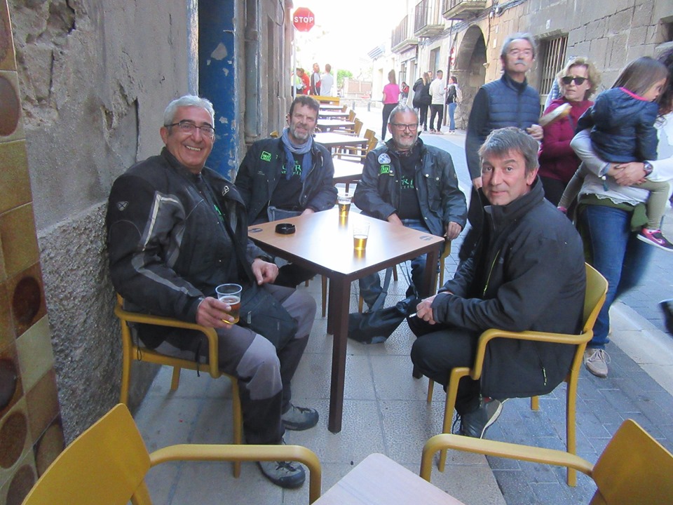 Pues tal y como ya apunté, el viernes por la tarde me fui para Tàrrega. Para no llegar tan temprano me monté una rutita que, debido a la calor, fue de lo más agradable: Térmens-Bellvís-Bell.lloc-Sidamon-Mollerussa-Miralcamp-Puiggrós-Borges Blanques-Montblanc-Sarral-Rocafort-Conesa-Abió-Vallfogona-Guimerà-Verdú i Tàrrega. Cuando llegué ya estaban Agustín, Carlos, Pepe y Jordi y Imma. Después llegaron, entre otros, Salva y Adela. Después de inscribirnos y tomar unas cervecitas, decidimos ir al centro a cenar y luego al camping a charlar. El sábado por la tarde llegaron Javier y Pedro para completar el quinteto Motrix. Este año creo que ha habido un 50% más de inscritos, por lo menos la zona de acampada hacía de muy buen ver con más de treinta tiendas montadas. A la hora de la cena tuvimos que hacerlo al aire libre, pues dentro era imposible de caber. La ruta barítima, bien, cinco consumiciones en cinco bares y pubs del centro. La inscripción era a 25€ con derecho a sorteo de regalos, camiseta técnica a escoger, roja o negra, diversos obsequios publicitarios, consumición de bienvenida, cena del sábado, concierto con DJ a base de vinilos de los 80, almuerzo el domingo con bebida y aperitivo al mediodía. Hay que hacer constar que el sábado nos llevaron de ruta por los castillos del Sió. El domingo el paseo era por la Ruta del Císter. Reunión muy familiar y un trato excelente por parte de la organización. Gracias Motards de Tàrrega.