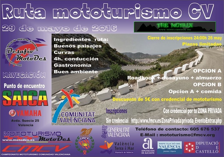 Las inscripciones deberás realizarlas por ese enlace o en la web de la FMCV por tu zona privada si posees la credencial de Mototurismo
