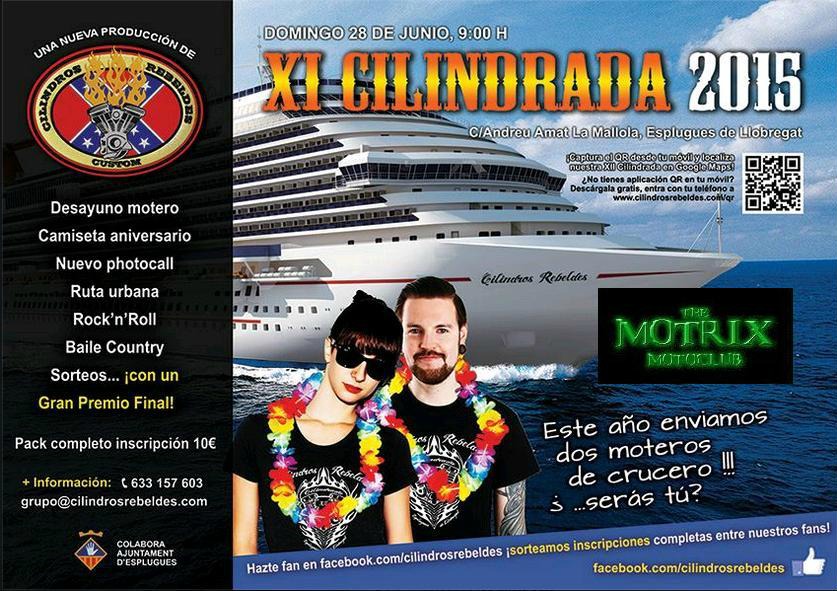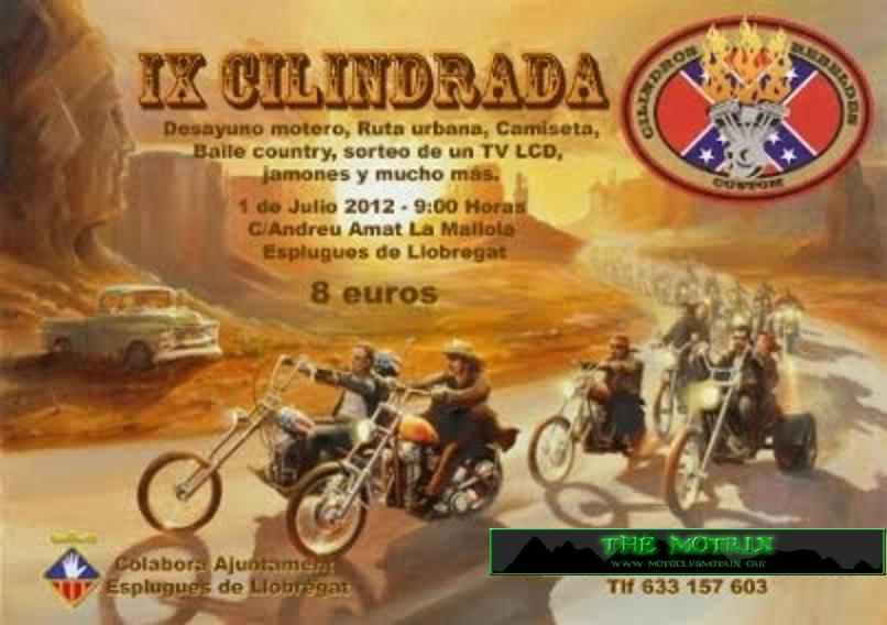 El próximo 1 de Julio, CILINDROS REBELDES celebrará la próxima de sus CILINDRADAS. Este año será la 9ª, que promete ser aun mejor que la anterior. Desde las 9 de la mañana y hasta las 3 de la tarde, tendremos de todo. Desayuno motero, camiseta, ruta urbana, baile country, jamones, cazadoras de piel, equipos de música para moto, y como colofón, sortearemos también un televisor LCD. Ah, y el lugar inmejorable, con mesas y sombra donde disfrutar del mejor ambiente entre amigos. Y todo esto y mucho mas por solo 8€.