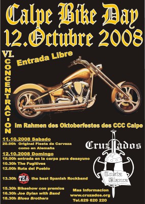 Este evento y la concentración de motos organizará el grupo de motoreros "Cruzados Costa Blanca" al final de la Fiesta de la Cerveza "Oktoberfest" del Club Carnaval Calpe.