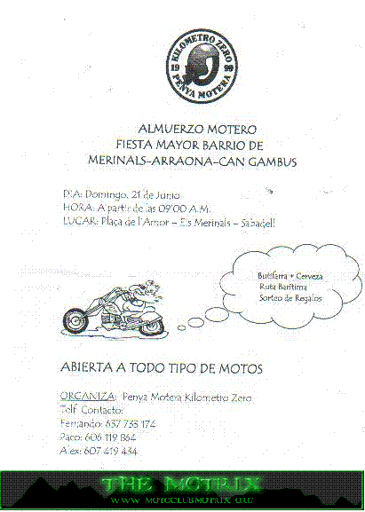 P.D;!se me olvidaba,damos una pequeña vuelta en moto por la zona y por supuesto pararemos a hacer una Birrita...