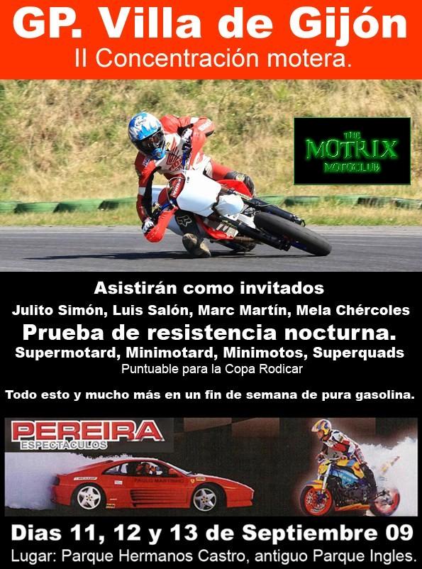 Queremos agradecer el apoyo total recibido por parte de los sponsors y en general por el mundo de la moto y pedir disculpas a todos los aficionados y a todos los invitados de honor que ya habían planificado sus vacaciones contando con el normal desarrollo de la concentración.L a organización de este año 2009 compuesta por 4 personas privadas sin ningún interés, más que el de promover una actividad lúdica y turística para la ciudad de Gijon al igual que otras tantas ciudades y pueblos del principado que añaden en su agenda anual una concentración motera que genera una gran demanda por ciudadanos y aficionados.