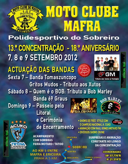 O Moto Clube de Mafra, vai realizar a 12 13 14 de Setembro de 2008 a 9ª concentração Mototuristica.