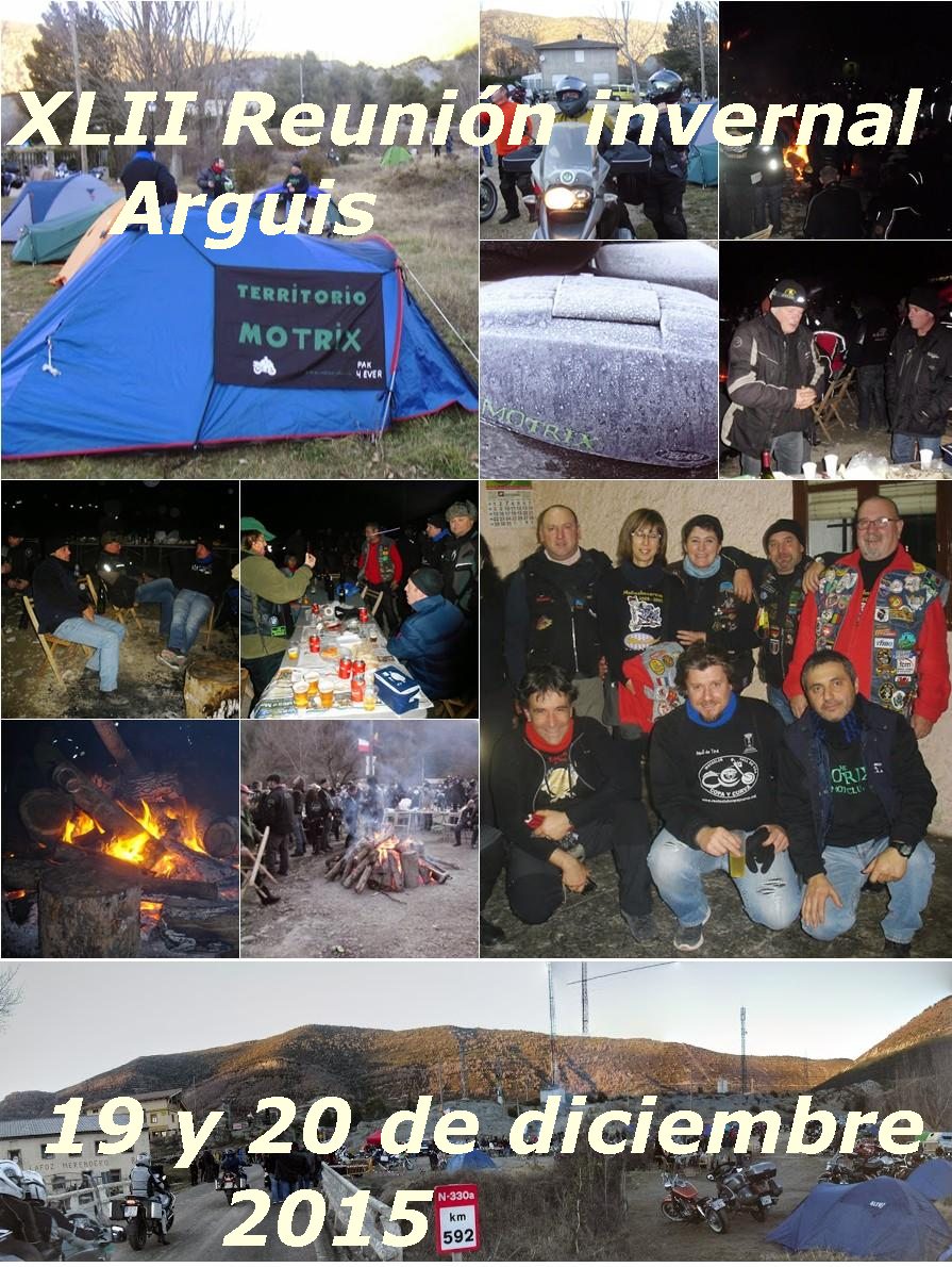 Cerramos el 2014 motero. Cerramos el año con la ilusión puesta en el siguiente, pero sin la necesidad de hacer balance ya que cuando uno sale en moto es porque te gusta, y si haces algo que te gusta, es prácticamente imposible no haberlo pasado bien. Atrás dejamos un año con 19 salidas por parte de éste motoclub, con tres viajes a Francia, uno a Soria y uno a Toledo como destacados. Atrás queda el pleno de asistencias de nuestro querido Forni. Atrás queda todo por la simple necesidad de arrancar un nuevo año con las ganas de pasarlo como mínimo igual de bien. Pero antes hay que dejar el listón bien alto, y no conocemos mejor manera que acercarnos a Arguis.