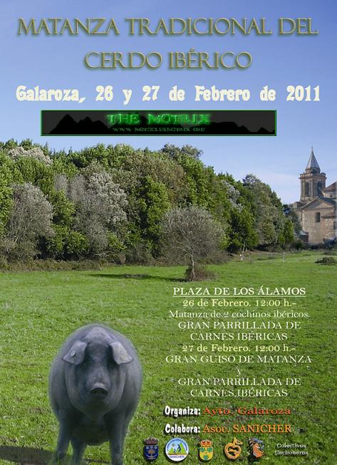 Este año la ya tradicional “Fiesta de La Matanza” en Galaroza serán los días 26 y 27 de Febrero, se montará una gran carpa en el paseo Ntra. Sra. del Carmen, donde se despiezarán, una vez sacrificados, dos cerdos a la manera tradicional y habrá, carne ibérica, guisos, bebidas, mucha música y mucho rugir de motos hasta el amanecer, os esperamos.