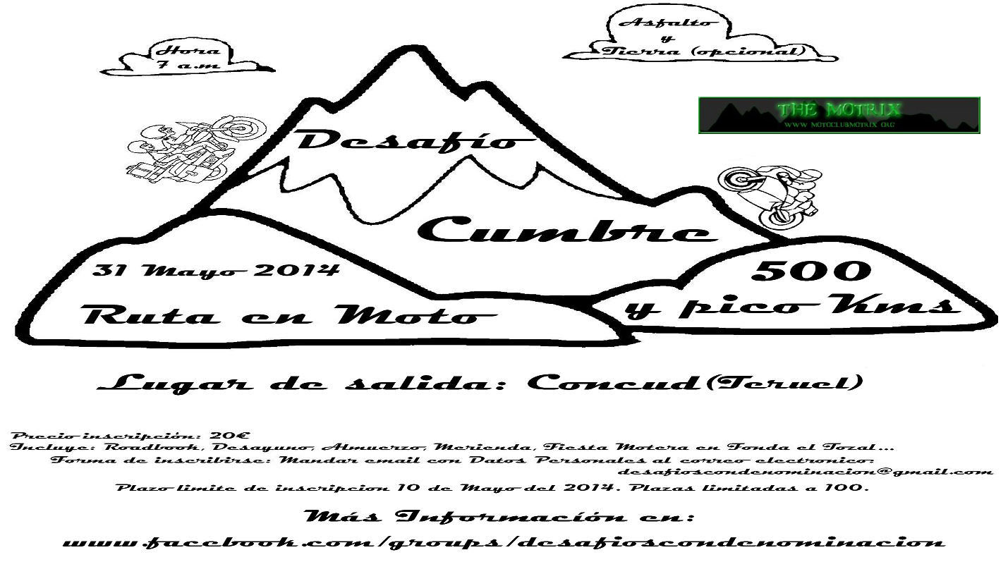 Recorrido de 599 km aproximados por la provincia de Teruel y alrededores, se limitara la inscripción a los 50 primeros.El precio de la inscripción sera 15 € aproximados. Incluirá, rutometro del recorrido, almuerzo y cena (estilo vino español) , salida desde Concud a las 07:00 h , en grupos de 5 motos cada 3 minutos, no existe ningún animo de lucro como observáis, solo consiste en pasar un día a tope de moto, disfrutar de paisajes impresionantes y sufrir el frió hasta en los huesos, todo valiente que se quiera apuntar que lo haga a través del correo electrónico : elranchogande@gmail.com