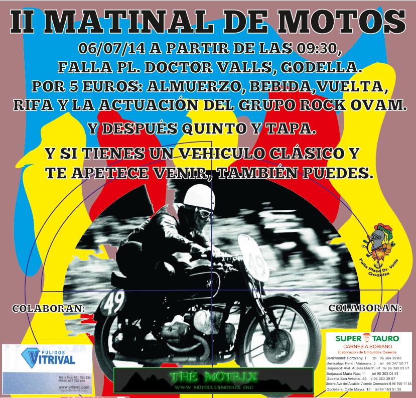 Matinal motera y de coches que se celebrará el próximo domingo día 06/07/2014 en la FALLA PZA DR. VALLS DE GODELLA y al que nos gustaría invitaros a todos.