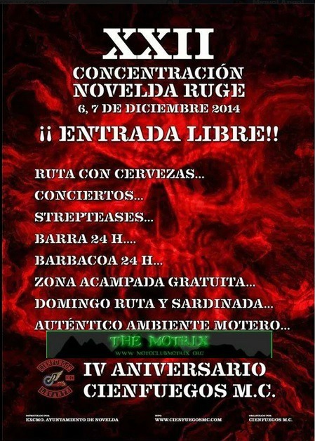 Durante todo el fin de semana Cienfuegos MC, que cumple su tercer aniversario este 2013, propone a los aficionados un "auténtico ambiente motero" con música, el tradicional espectáculo de strepteases, rutas con cervezas, servicio de barra, barbacoa y zona de acampada gratuita, además de almuerzo y sardinada para el domingo.