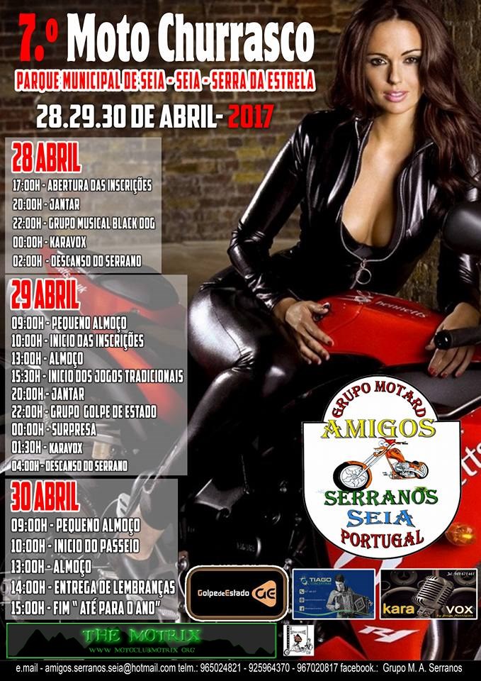 O X Moto Churrasco pelo motivo de indisponibilidade do Parque Municipal, por se encontrar em obras, o evento irá decorrer em novo local, na sede do Centro Cultural Recreativo Viriatos na localidade da Arrifana -Seia a 3 Km do centro da cidade com local de acampamento coberto.