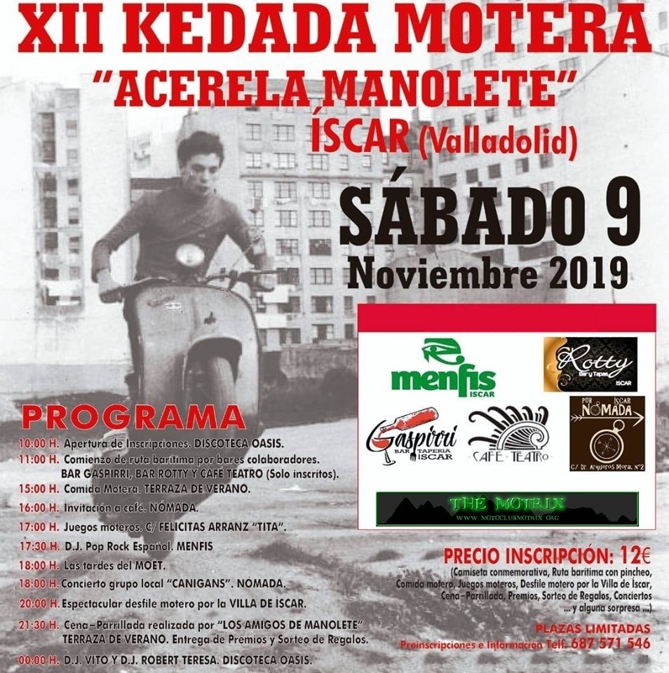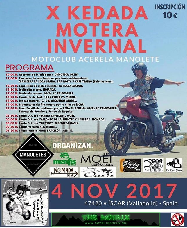 ORGANIZADOR: ZONA DE BARES DE ÍSCAR Y MOTOCLUB ACERELA MANOLETE VALLADOLID.