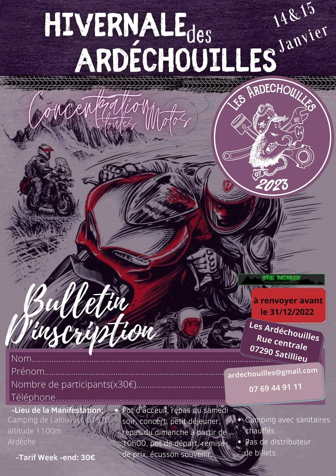 Para la ficha de inscripción mandar un correo a concentraciones@motoclubmotrix.org antes del 31 de diciembre