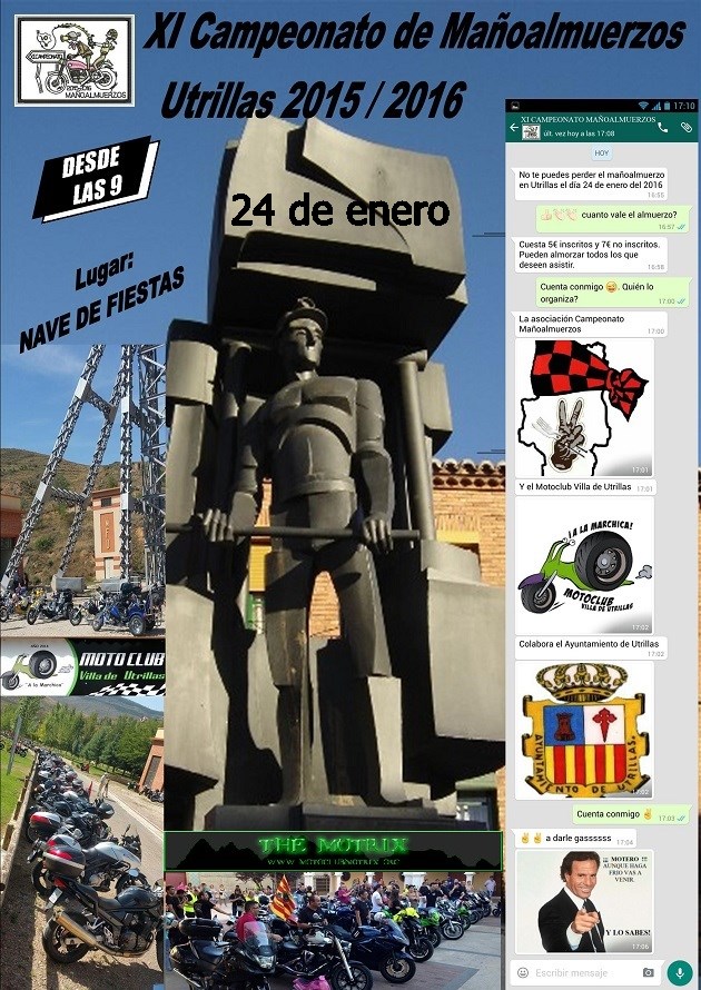 El domingo día 22 de noviembre en Montalbán (Teruel), uno más de los Mañoalmuerzos de los que se realizan por tierras mañas en este XI Campeonato de Mañoalmuerzos. Organizado por el Motoclub Despiste.