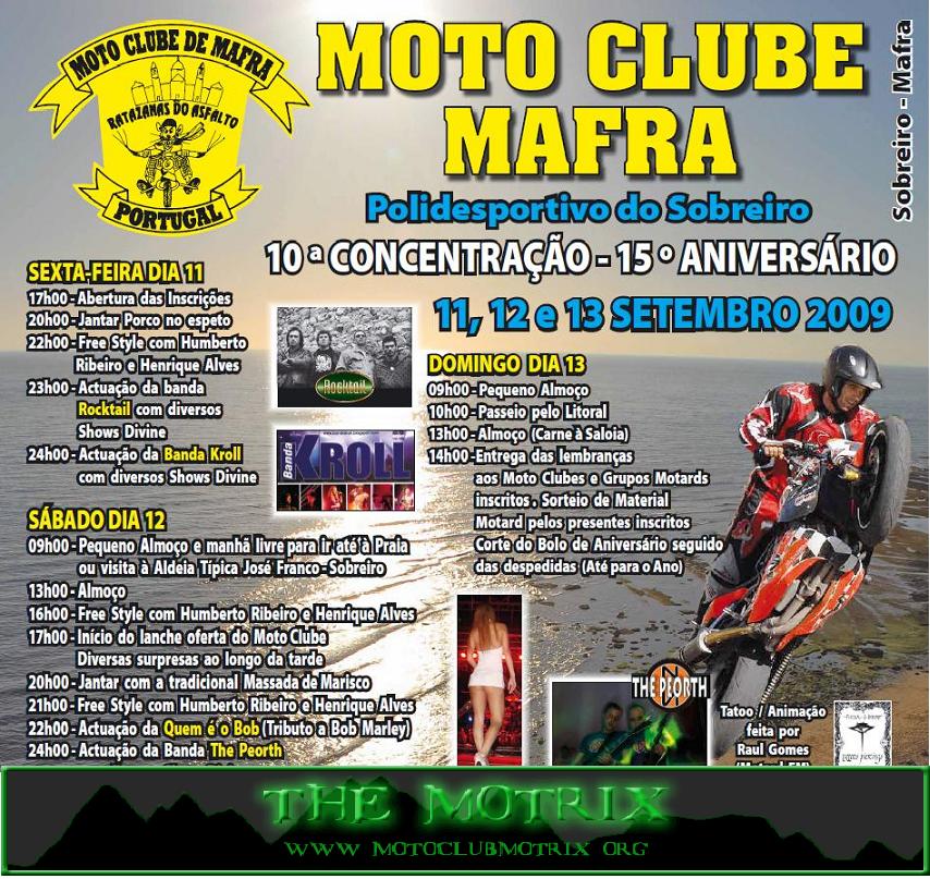 O Moto Clube de Mafra, vai realizar a 12 13 14 de Setembro de 2008 a 9ª concentração Mototuristica.