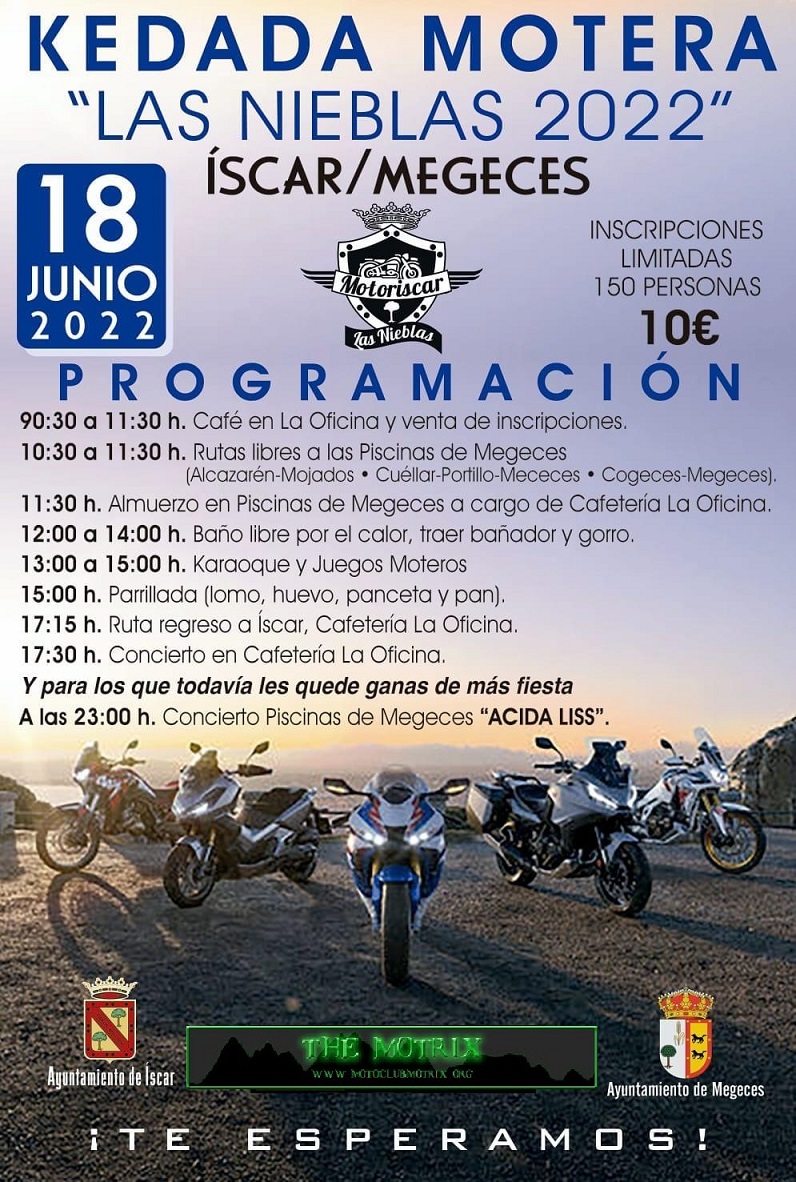 Esta concentra se celebra dos días, viernes y sábado, domingo y solo para los inscritos, te puedes quedar a sobar y te dan desayunomarlboro escribió:Hola. Seguro que son estas fechas? Y seguro que se celebra este año? Es que el año pasado la hicieron solo de un dia si no recuerdo mal y en internet no encuentro ningun cartel nada!!