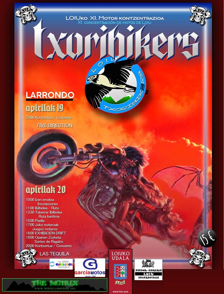 Este año, seguimos con nuestra concentración motera de Loiu, como siempre en nuestro querido pueblo, pero en esta ocasión nos trasladamos a otro barrio de Loiu. Este año, la concentración de los TXORIBIKERS, la hacemos en el barrio de LARRONDO, en Loiu.