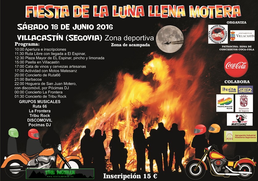 El Moto Club La leyenda Continúa organiza el próximo sábado día 18 de junio, la concentración motorista “Fiesta de la Luna Llena Motera”, en la localidad segoviana de Villacastín, con el propósito de reunir a los aficionados a las dos ruedas para celebrar, con unos días de antelación y para aprovechar el fin de semana, la noche de San Juan.
