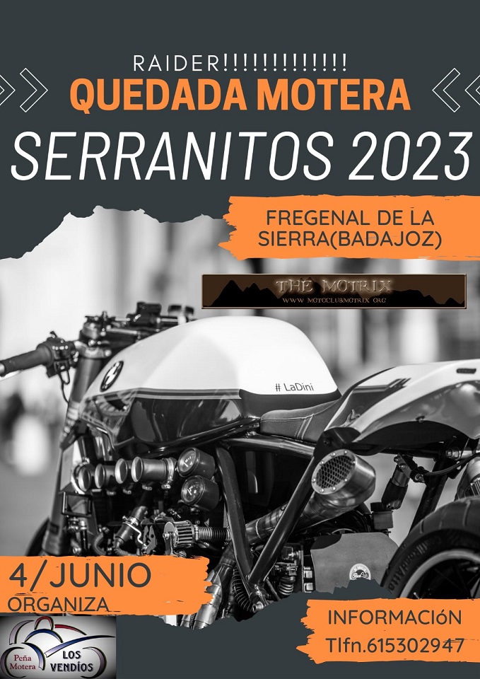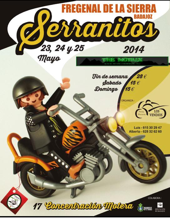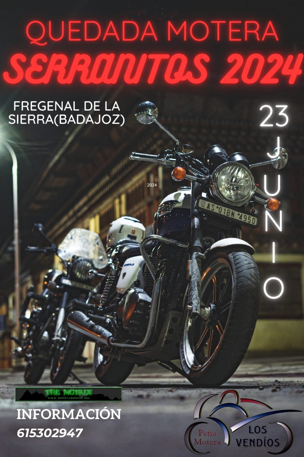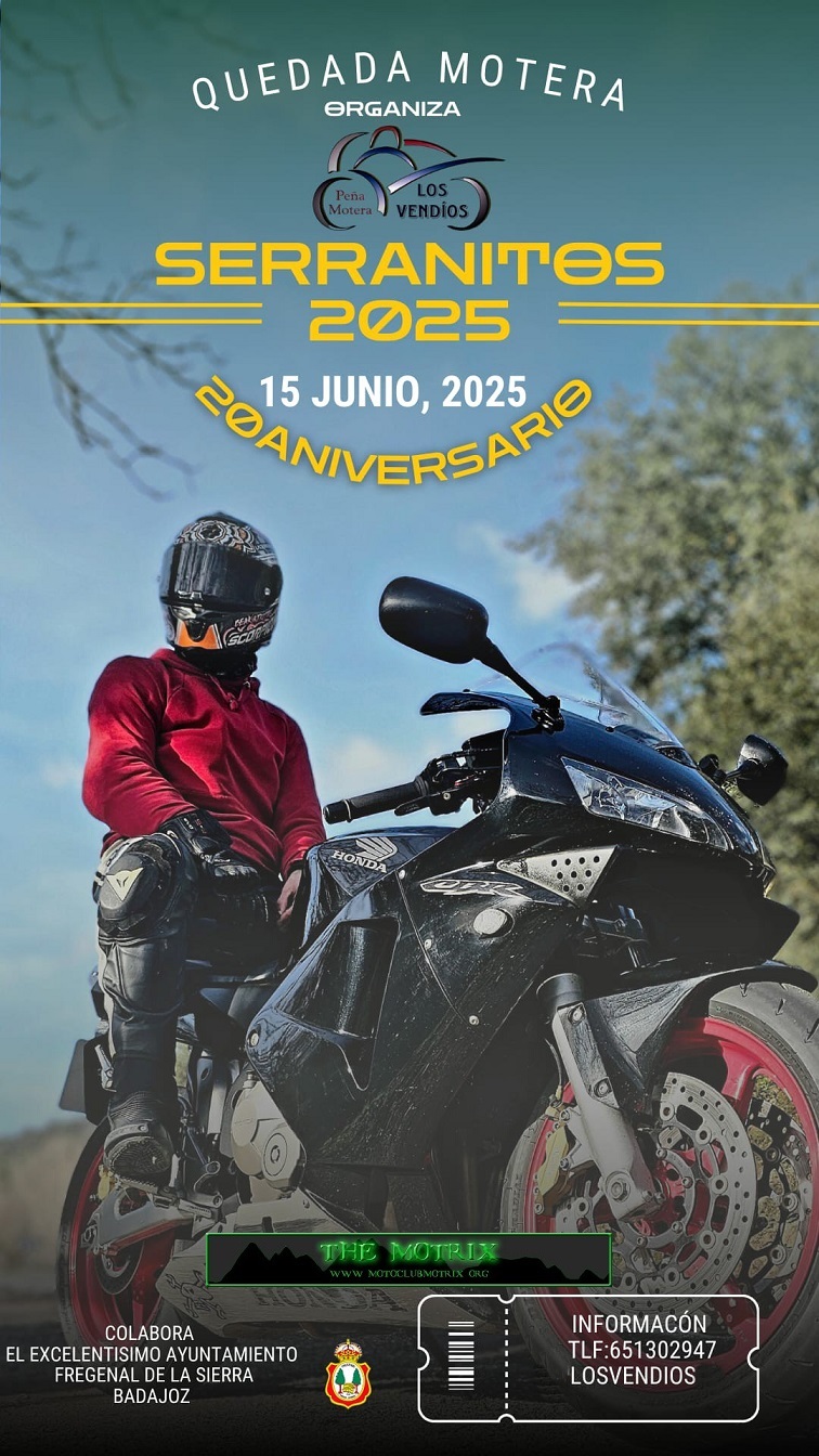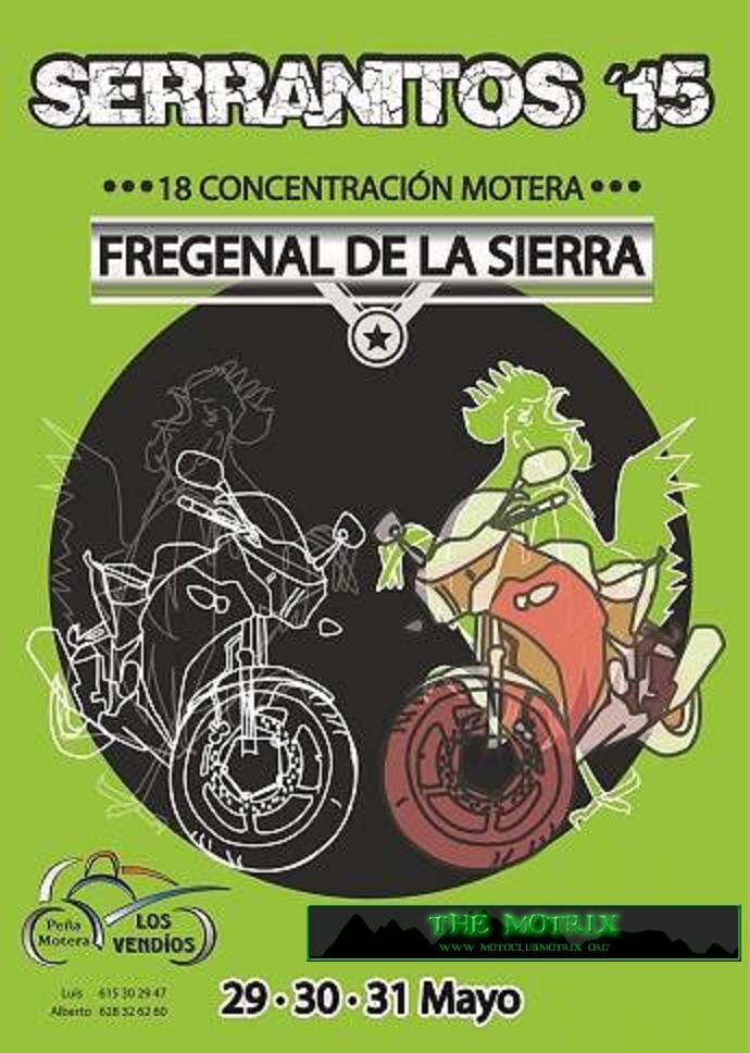 La peña motera "LOS VENDIOS" os tiene preparado un fin de semana repleto de actividades, con un programa pensado por moteros y para moteros con el fin de que disfrutéis lo máximo posible de las motos y del pueblo de Fregenal y su gente, que como siempre se vuelca con todos vosotros.Niobe escribió:XVII CONCENTRACIÓN MOTERA SERRANITOS