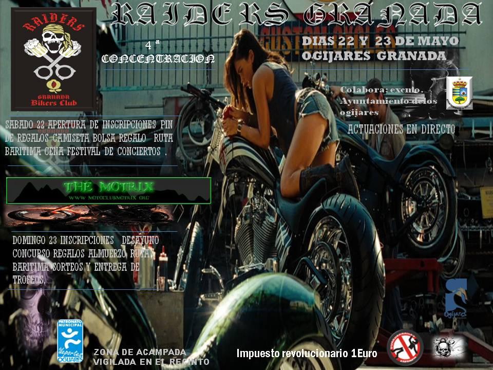 Ya tenemos fecha para la 2ª concentracion de los raiders en el recinto ferial de la zubia se celebrara los dias 24 y 25 de Mayo del 2008, este año contamos con acampada en el mismo recinto para que no tengamos que coger las monturas para ir a acostarnos ya iremos perfilando las actividades que vamos a llevar a cavo un saludo para todos os esperamos...