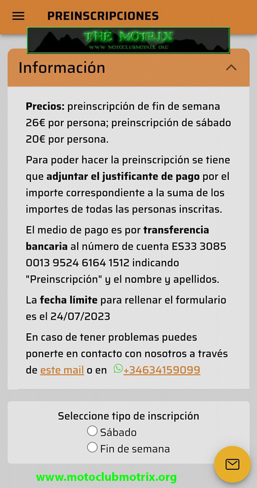 Preinscripciones: 20,00 €. Ponerse en contacto para información.