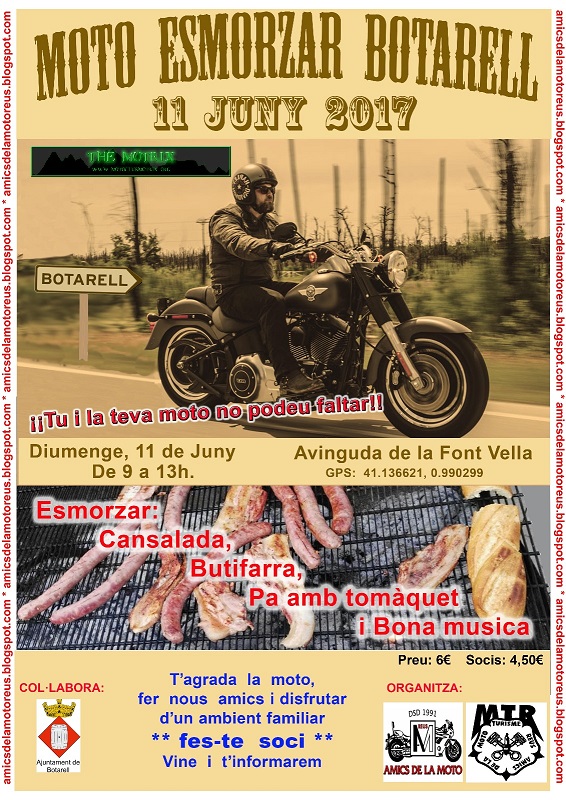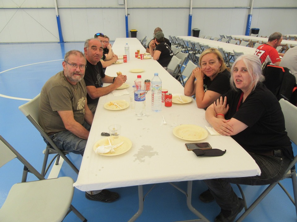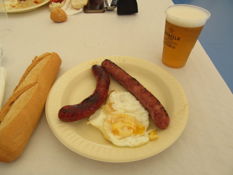 Pues no había estado nunca en este almuerzo ni en esta población, aunque sí en otros eventos organizados por Amics de la moto de Reus. A las 9 de la mañana estaba todo preparado para degustar el almuerzo : 1 huevo frito, 1 chistorra y una longaniza más pan y bebida con derecho a sorteo de regalos y música en directo, todo ello por 6€. Hay que destacar la super señalización para llegar al polideportivo, es de agradecer. La afluencia no ha sido muy grande, quizás debido al fuerte calor. Otra más.