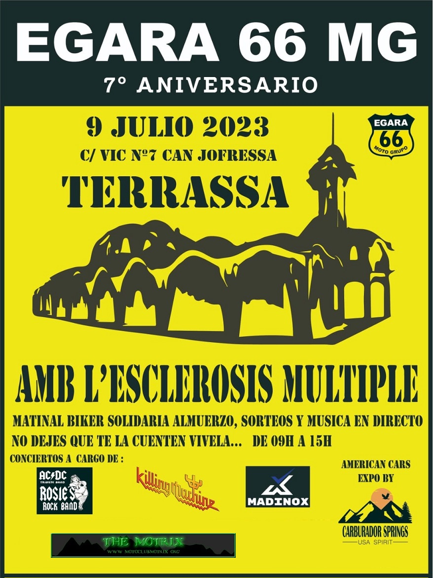 Como ya dije para Terrassa que me fuí este domingo. El lugar del evento, la Masia Els Bellots, me atraía pues había estado allí hace años en una concemntración organizada por el mismo moto grupo, Egara 66. Decir debo en primer lugar que quedé un poco decepcionado por el aparente abandono del lugar, muy descuidado para mi parecer, comparándolo a mis recuerdos. Lo positivo del día fue a mi entender el encuentro de una cuarta parte de Motrix, que hacía tiempo que no se producía : Neo, que vino con la moto ligeramente tocada, Pegaso, Forni, Kaiser con su nueva adquisición y un servidor. El evento lo aprovechamos a tope : de nueve de la mañana, fuimos los primeros, hasta las tres de la tarde, los últimos en marchar. Aparte del bocadillo de butifarra y cerveza, número para el sorteo, recuerdo para el motoclub y concierto con tres grupos que nos amenizaron la cálida mañana. Otra agradable sorpresa fue la presencia del único fundador de Motrix que yo no conocía: Antonio, con su hijo Toni y su amigo Jordi, un gran placer, con quienes compartimos mesa y tiempo, a parte de unas birras. En fin, mañana super aprovechada que ojalá se repita más a menudo.