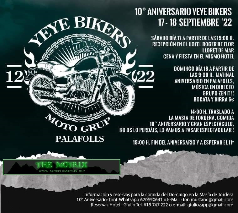 12° Aniversario Yeye Bikers !! 15 de Septiembre Plaza Vall Dax Palafolls !!