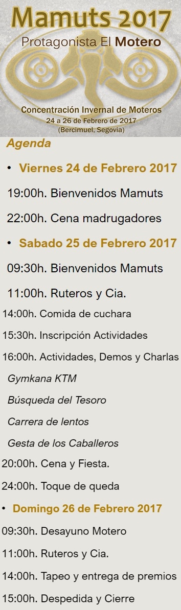 Los próximos días 27 y 28 de Febrero de 2016, se convoca en Bercimuel (Segovia) a todos aquellos moteros que buscan una concentración en la que participar de las actividades y no ser meros espectadores.