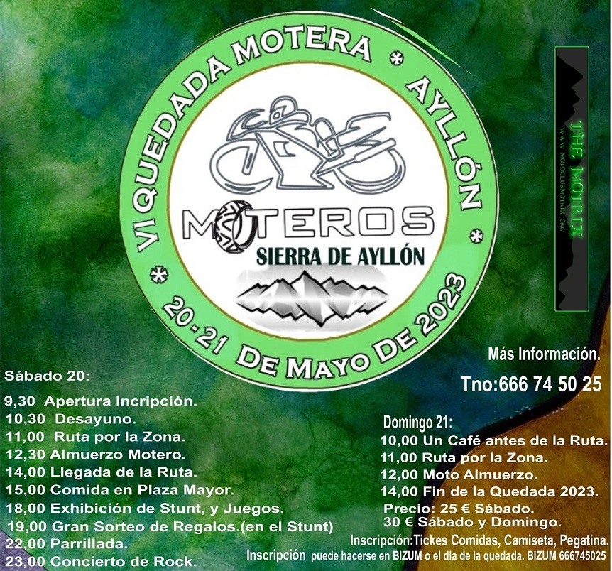 Sir Gallard escribió: ↑24 May 2022, 14:01 Estube este finde en esta concentracion, no falto de nada. Chocolate con churros en la ispcriccion. Acampada en campo de futbol, 2 rutas con sus pincheos...paella mixta buenisima el sabado para comer y parrilada para cenar...con sus respectibas bebidas....sorteo de regalos, stund y grupo de musica en la plaza. Muy familiar. Los del motoclub...muy enrollaos....tube problemas de arranque en el scooter y ellos me lo solucionaron...bornes flojos de la bateria !!!. YO SEGUNDA VEZ KE VOY...Y SI PUEDO VOLVERE POR AYLLON !!!