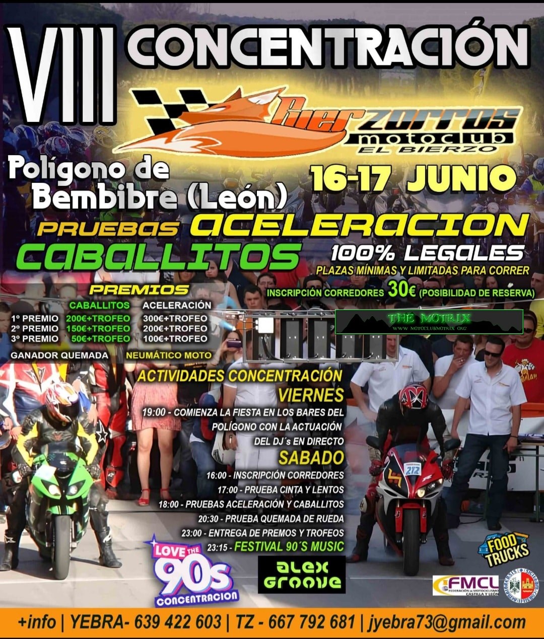 Fanáticos de las dos ruedas!! Id marcando estas fechas en vuestro calendario porque desde el Moto club Bierzorros ya estamos trabajando a fondo para preparar una de las concentraciones que no deja indiferente a nadie. Regalos, rutas, buena comida berciana, muchas sorpresas y como las mejores y 100% legales pruebas de caballitos y aceleración.